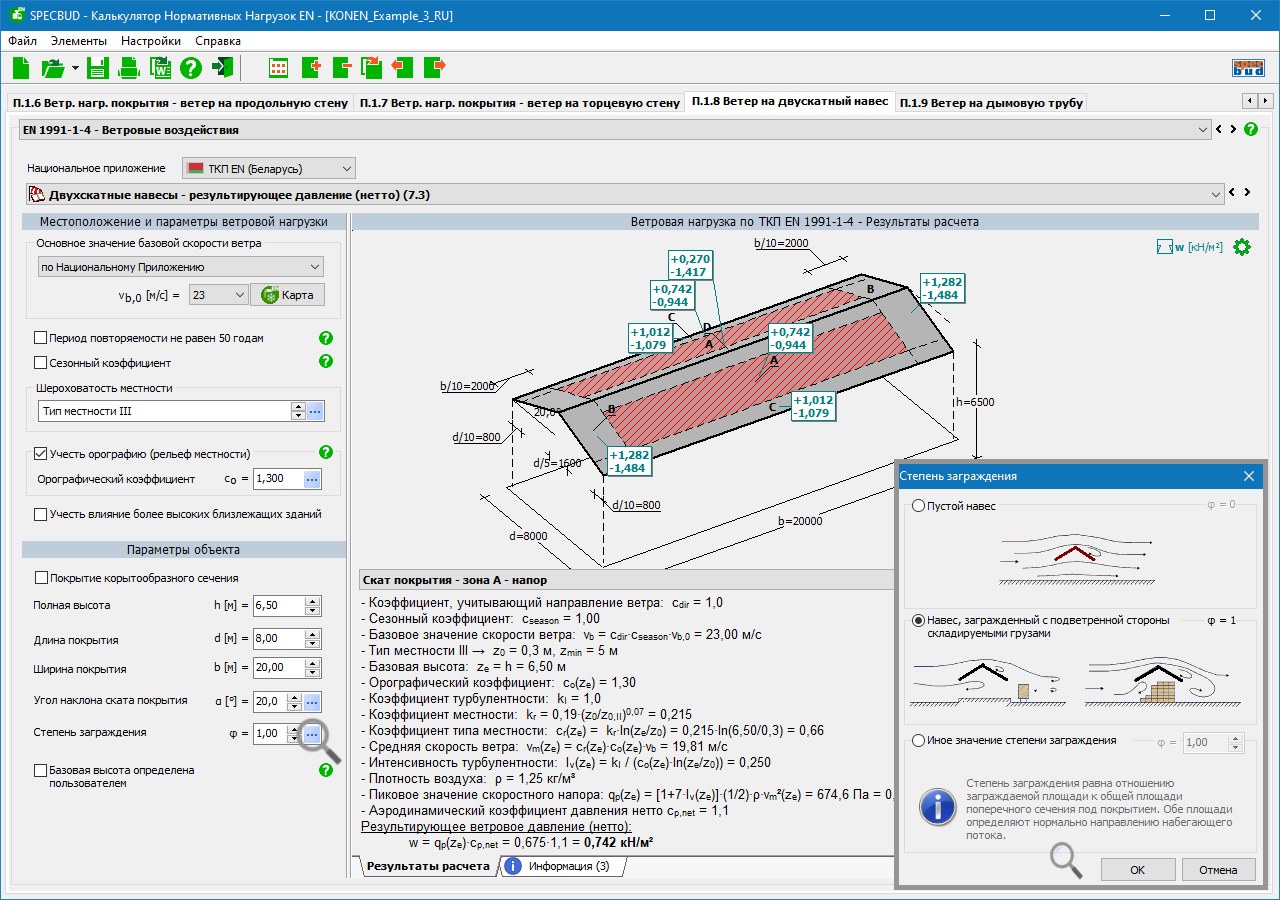 | ► Ветровые воздействия – определение ветровых нагрузок в соответствии со стандартом EN 1991-1-4 для стен и покрытий (односкатных, двускатных, вальмовых, сводчатых, куполов) зданий, отдельностоящих стен и парапетов, рекламных щитов, конструктивных элементов, круговых цилиндров и флагов. |