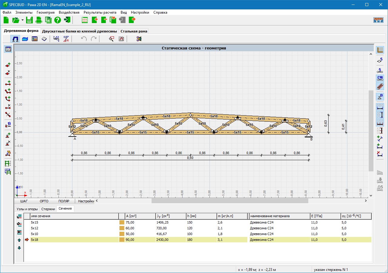 Программа предназначена для статических расчетов плоских стержневых систем (2D систем), с учетом сочетаний воздействий – автоматически созданных (в соответствии с EN 1990) или индивидуально созданных Пользователем.