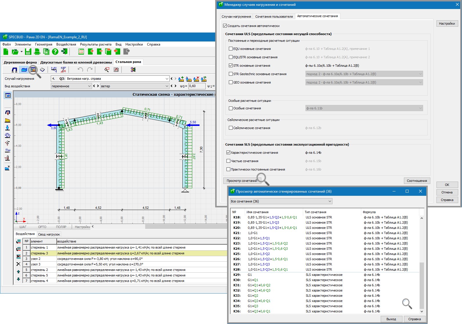 версия: R2DEN v2Программа предназначена для статических расчетов плоских стержневых систем, с учетом сочетаний воздействий – автоматически созданных (в соответствии с EN 1990) или индивидуально созданных Пользователем.