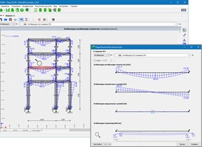 Результаты расчетов представлены для отдельных случаев нагружений, сочетаний и огибающих, в виде эпюр и таблиц внутренних усилий, напряжений и перемещений. Возможно форматирование диапазона и формы отчета, для получения компактной пояснительной записки по результатам расчета. Отчет можно распечатать или сохранить в формате MS Word или формате для другого текстового редактора.