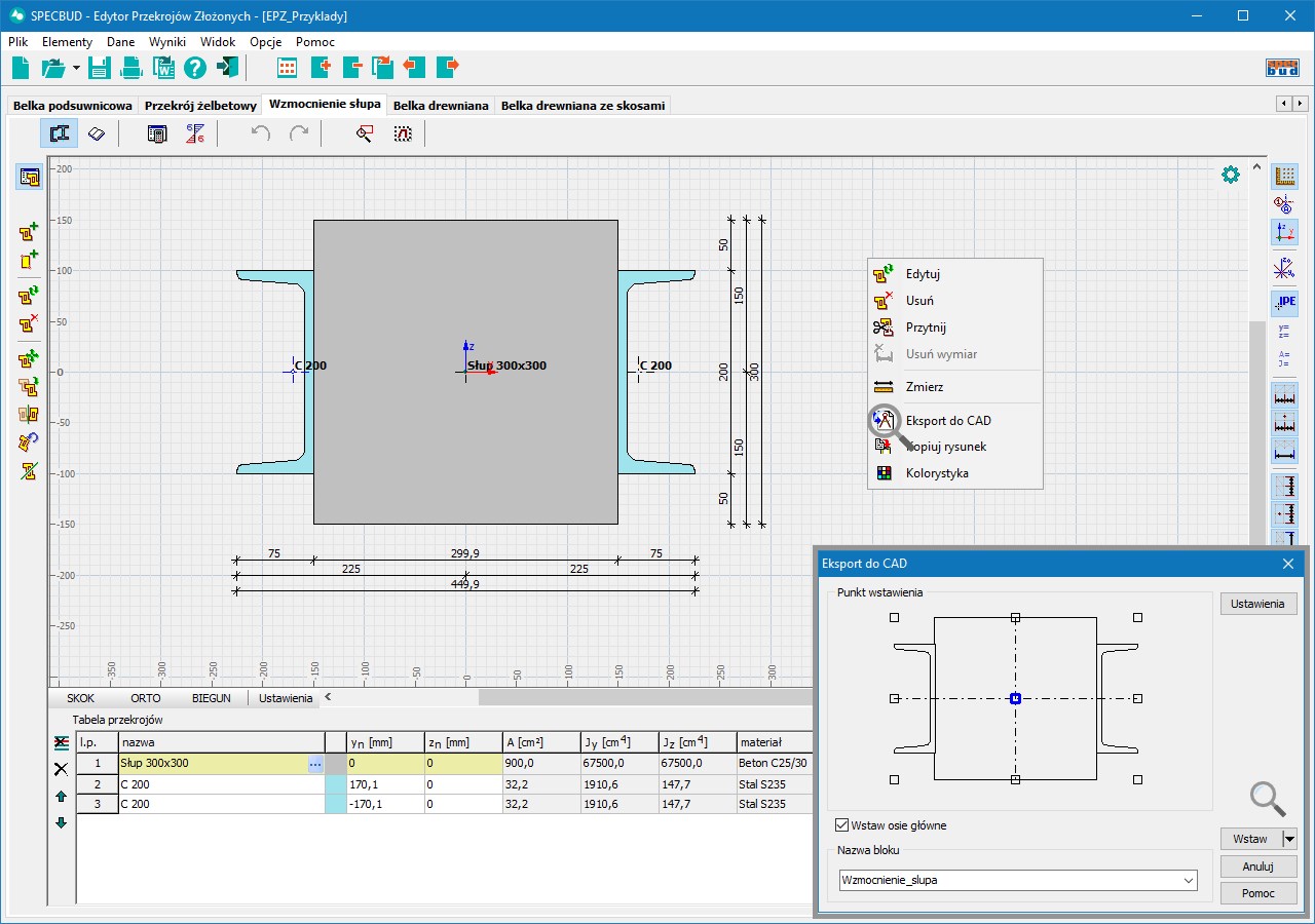 - экспорт текущей спецификации в файл DXF или вставка непосредственно в CAD программу.